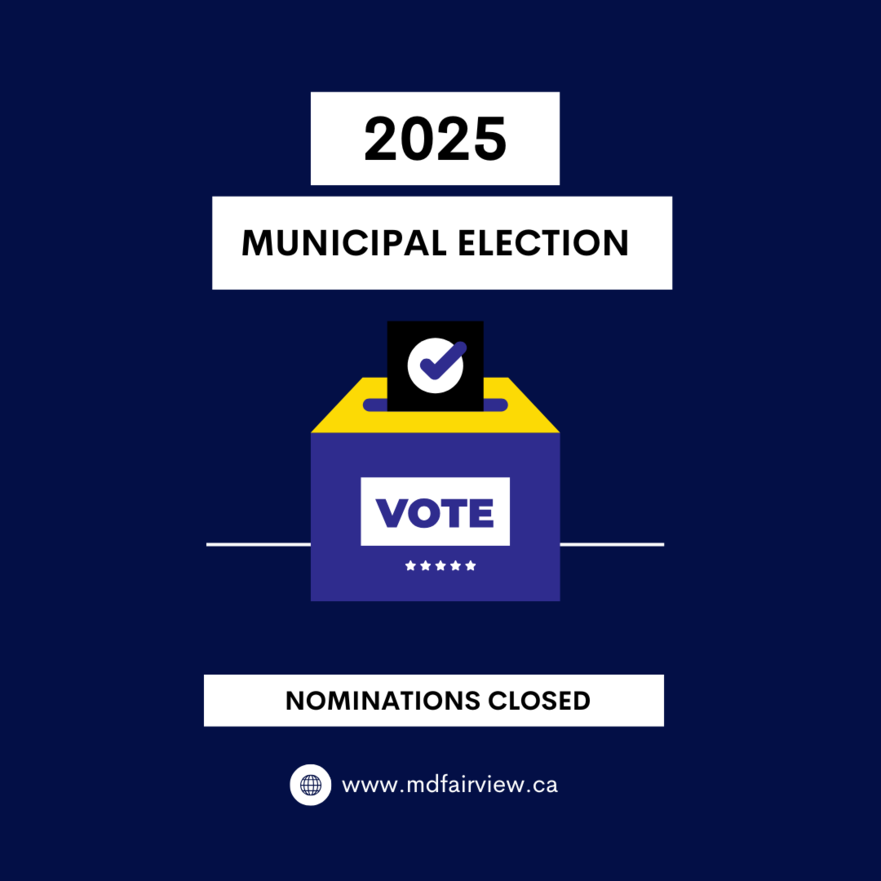 In accordance with the Local Authorities Election Act, Nominations for the 2025 M.D. of Fairview No. 136 2025 Municipal Election closed as of 12:00 p.m. (noon), today, September 22, 2025.