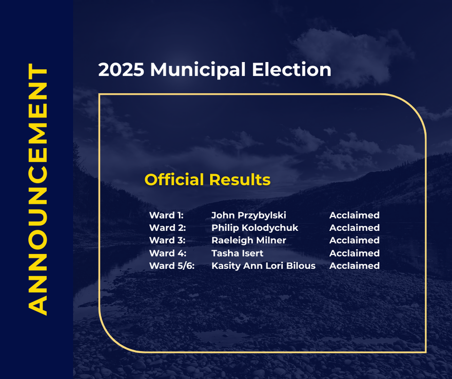 Returning Officer Tim Schindel has declared election by acclamation to the office of councillor for all wards of the Municipality.