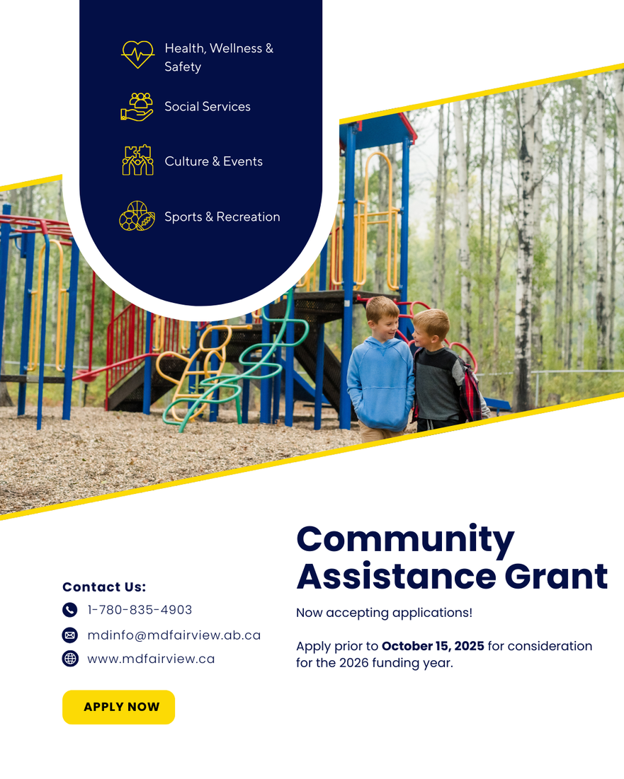 The M.D. of Fairview No. 136 is now accepting applications for the Community Assistance Grant Program for the 2026 funding year.