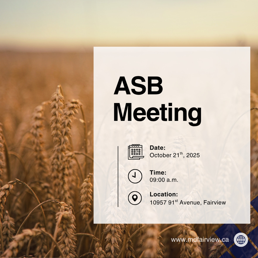 The next Agricultural Services Board (ASB) Meeting will be held at the municipal office on October 21, 2025 at 9:00 a.m.